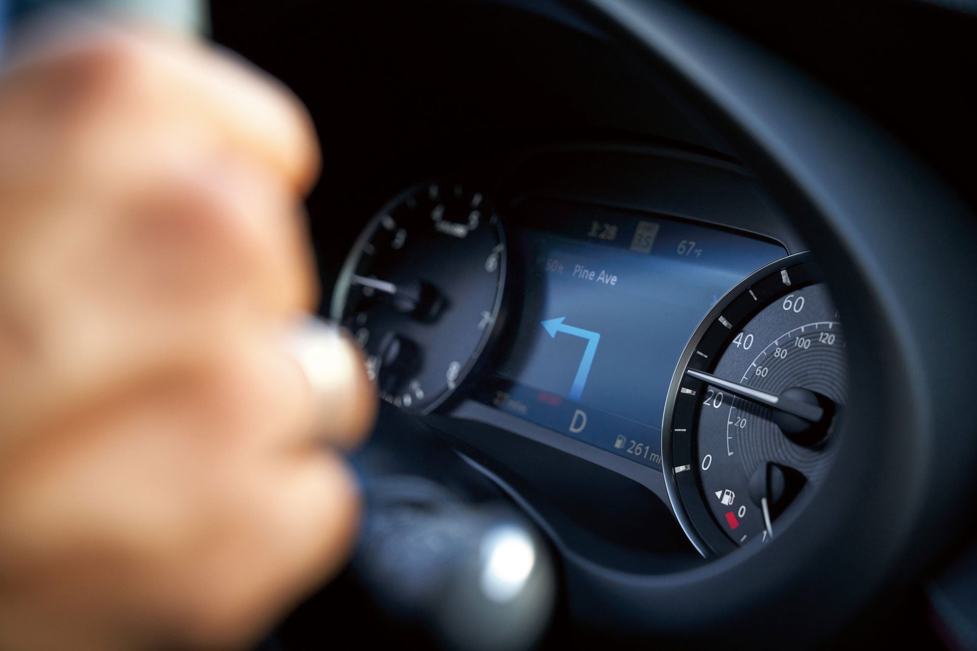 QX55’s available Head-Up Display system is directly inspired by aerospace technology, projecting key information onto the windshield so that it’s immediately visible without needing to take your eyes off the drive.[*]