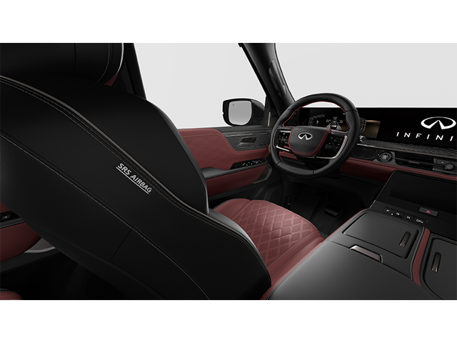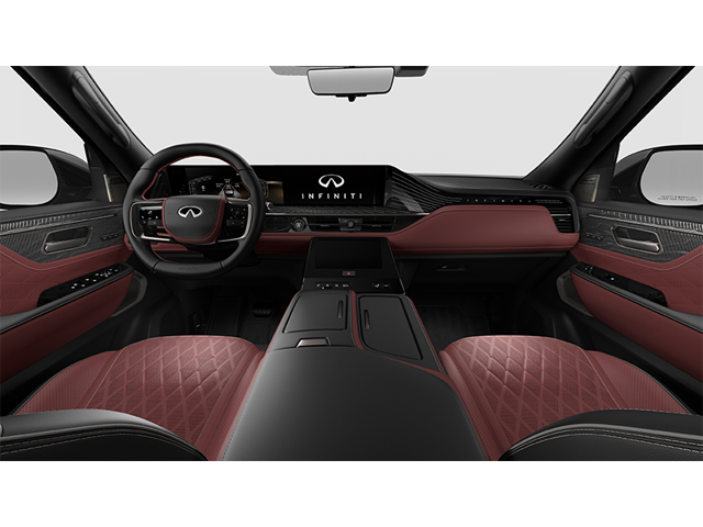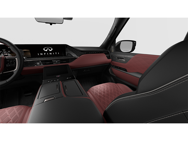 Premium Cargo Package (Cargo Blocks/Stabilizers, Cargo Shelf/Barrier, Carpeted Cargo Area Protector, Console Net, and Soft-Sided Cargo Cooler), 3rd row seats: bench, 4-Wheel Disc Brakes, ABS brakes, Adaptive suspension, Air Conditioning, Alloy wheels, AM/FM radio: SiriusXM with 360L, Anti-whiplash front head restraints, Apple CarPlay/Android Auto, Audio memory, Auto High-beam Headlights, Auto tilt-away steering wheel, Auto-dimming door mirrors, Auto-dimming Rear-View mirror, Auto-leveling suspension, Automatic temperature control, Brake assist, Bumpers: body-color, Compass, Delay-off headlights, Driver door bin, Driver vanity mirror, Dual front impact airbags, Dual front side impact airbags, Electronic Stability Control, Emergency communication system: INFINITI InTouch, Four wheel independent suspension, Front anti-roll bar, Front Bucket Seats, Front Center Armrest, Front dual zone A/C, Front reading lights, Fully automatic headlights, Garage door transmitter: myQ Connected Garage, Genuine wood dashboard insert, Genuine wood door panel insert, Heads-Up Display, Heated and Climate Controlled Front Bucket Seats with Massage, Heated door mirrors, Heated front seats, Heated rear seats, Heated steering wheel, HVAC memory, Illuminated entry, Knee airbag, Leather steering wheel, Low tire pressure warning, Memory seat, Navigation system: Google Built-in, Occupant sensing airbag, Outside temperature display, Overhead airbag, Overhead console, Panic alarm, Passenger door bin, Passenger vanity mirror, Power door mirrors, Power driver seat, Power Liftgate, Power moonroof, Power passenger seat, Power steering, Power windows, Radio data system, Radio: Klipsch Premiere Audio System, Rain sensing wipers, Rear air conditioning, Rear anti-roll bar, Rear reading lights, Rear seat center armrest, Rear window defroster, Rear window wiper, Reclining 3rd row seat, Remote keyless entry, Security system, Semi-Aniline Premium Leather Seating Surfaces, Speed control, Speed-sensing steering, Splash Guards, Split folding rear seat, Spoiler, Steering wheel memory, Steering wheel mounted audio controls, Tachometer, Telescoping steering wheel, Tilt steering wheel, Traction control, Trip computer, Turn signal indicator mirrors, Two-Tone Premium Paint, Variably intermittent wipers, Ventilated front seats, Ventilated rear seats, and Wheels: 22 x 8.5J Cast Aluminum-Alloy. Price includes: $9000 - Retail Cash. Exp. 05/04/2026