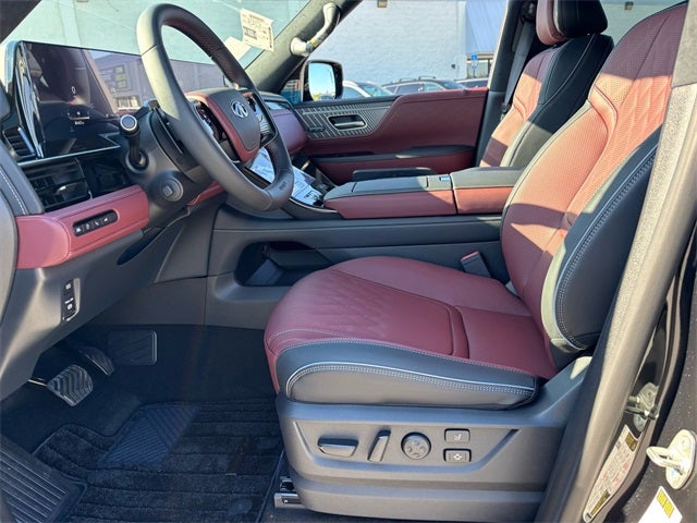 3rd row seats: bench, 4-Wheel Disc Brakes, ABS brakes, Adaptive suspension, Air Conditioning, Alloy wheels, AM/FM radio: SiriusXM with 360L, Anti-whiplash front head restraints, Apple CarPlay/Android Auto, Audio memory, Auto High-beam Headlights, Auto tilt-away steering wheel, Auto-dimming door mirrors, Auto-dimming Rear-View mirror, Auto-leveling suspension, Automatic temperature control, Brake assist, Bumpers: body-color, Compass, Delay-off headlights, Driver door bin, Driver vanity mirror, Dual front impact airbags, Dual front side impact airbags, Electronic Stability Control, Emergency communication system: INFINITI InTouch, Four wheel independent suspension, Front anti-roll bar, Front Bucket Seats, Front Center Armrest, Front dual zone A/C, Front reading lights, Fully automatic headlights, Garage door transmitter: myQ Connected Garage, Genuine wood dashboard insert, Genuine wood door panel insert, Heads-Up Display, Heated and Climate Controlled Front Bucket Seats with Massage, Heated door mirrors, Heated front seats, Heated rear seats, Heated steering wheel, HVAC memory, Illuminated entry, Knee airbag, Leather steering wheel, Low tire pressure warning, Memory seat, Navigation system: Google Built-in, Occupant sensing airbag, Outside temperature display, Overhead airbag, Overhead console, Panic alarm, Passenger door bin, Passenger vanity mirror, Power door mirrors, Power driver seat, Power Liftgate, Power moonroof, Power passenger seat, Power steering, Power windows, Radio data system, Radio: Klipsch Premiere Audio System, Rain sensing wipers, Rear air conditioning, Rear anti-roll bar, Rear reading lights, Rear seat center armrest, Rear window defroster, Rear window wiper, Reclining 3rd row seat, Remote keyless entry, Security system, Semi-Aniline Premium Leather Seating Surfaces, Speed control, Speed-sensing steering, Split folding rear seat, Spoiler, Steering wheel memory, Steering wheel mounted audio controls, Tachometer, Telescoping steering wheel, Tilt steering wheel, Traction control, Trip computer, Turn signal indicator mirrors, Variably intermittent wipers, Ventilated front seats, Ventilated rear seats, and Wheels: 22 x 8.5J Cast Aluminum-Alloy. Price includes: $7000 - Retail Cash. Exp. 02/02/2026