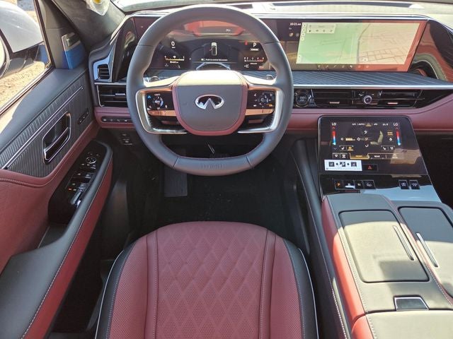 3rd row seats: bench, 4-Wheel Disc Brakes, ABS brakes, Adaptive suspension, Air Conditioning, Alloy wheels, AM/FM radio: SiriusXM with 360L, Anti-whiplash front head restraints, Apple CarPlay/Android Auto, Audio memory, Auto High-beam Headlights, Auto tilt-away steering wheel, Auto-dimming door mirrors, Auto-dimming Rear-View mirror, Auto-leveling suspension, Automatic temperature control, Brake assist, Bumpers: body-color, Compass, Delay-off headlights, Driver door bin, Driver vanity mirror, Dual front impact airbags, Dual front side impact airbags, Electronic Stability Control, Emergency communication system: INFINITI InTouch, Four wheel independent suspension, Front anti-roll bar, Front Bucket Seats, Front Center Armrest, Front dual zone A/C, Front reading lights, Fully automatic headlights, Garage door transmitter: myQ Connected Garage, Genuine wood dashboard insert, Genuine wood door panel insert, Heads-Up Display, Heated and Climate Controlled Front Bucket Seats with Massage, Heated door mirrors, Heated front seats, Heated rear seats, Heated steering wheel, HVAC memory, Illuminated entry, Knee airbag, Leather steering wheel, Low tire pressure warning, Memory seat, Navigation system: Google Built-in, Occupant sensing airbag, Outside temperature display, Overhead airbag, Overhead console, Panic alarm, Passenger door bin, Passenger vanity mirror, Power door mirrors, Power driver seat, Power Liftgate, Power moonroof, Power passenger seat, Power steering, Power windows, Radio data system, Radio: Klipsch Premiere Audio System, Rain sensing wipers, Rear air conditioning, Rear anti-roll bar, Rear reading lights, Rear seat center armrest, Rear window defroster, Rear window wiper, Reclining 3rd row seat, Remote keyless entry, Security system, Semi-Aniline Premium Leather Seating Surfaces, Speed control, Speed-sensing steering, Split folding rear seat, Spoiler, Steering wheel memory, Steering wheel mounted audio controls, Tachometer, Telescoping steering wheel, Tilt steering wheel, Traction control, Trip computer, Turn signal indicator mirrors, Variably intermittent wipers, Ventilated front seats, Ventilated rear seats, and Wheels: 22 x 8.5J Cast Aluminum-Alloy. Price includes: $9000 - Retail Cash. Exp. 03/31/2026