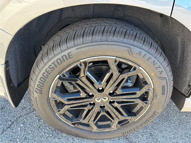 Sport Exterior Package (Black Roof Rail Crossbars and Dark Chrome Rear Bumper Protector), 3rd row seats: bench, 4-Wheel Disc Brakes, ABS brakes, Adaptive suspension, Air Conditioning, Alloy wheels, AM/FM radio: SiriusXM with 360L, Anti-whiplash front head restraints, Apple CarPlay/Android Auto, Audio memory, Auto High-beam Headlights, Auto tilt-away steering wheel, Auto-dimming door mirrors, Auto-dimming Rear-View mirror, Auto-leveling suspension, Automatic temperature control, Brake assist, Compass, Delay-off headlights, Driver door bin, Driver vanity mirror, Dual front impact airbags, Dual front side impact airbags, Electronic Stability Control, Emergency communication system: INFINITI InTouch, Four wheel independent suspension, Front anti-roll bar, Front Bucket Seats, Front Center Armrest, Front dual zone A/C, Front reading lights, Fully automatic headlights, Garage door transmitter: HomeLink, Genuine wood dashboard insert, Genuine wood door panel insert, Heads-Up Display, Heated and Climate Controlled Front Bucket Seats with Massage, Heated door mirrors, Heated front seats, Heated rear seats, Heated steering wheel, HVAC memory, Illuminated entry, Knee airbag, Leather steering wheel, Low tire pressure warning, Memory seat, Navigation system: Google Built-in, Occupant sensing airbag, Outside temperature display, Overhead airbag, Overhead console, Panic alarm, Passenger door bin, Passenger vanity mirror, Power door mirrors, Power driver seat, Power Liftgate, Power moonroof, Power passenger seat, Power steering, Power windows, Radio data system, Radio: Klipsch Premiere Audio System, Rain sensing wipers, Rear air conditioning, Rear anti-roll bar, Rear reading lights, Rear seat center armrest, Rear window defroster, Rear window wiper, Reclining 3rd row seat, Remote keyless entry, Security system, Speed control, Speed-sensing steering, Splash Guards, Split folding rear seat, Spoiler, Steering wheel memory, Steering wheel mounted audio controls, Tachometer, Telescoping steering wheel, Tilt steering wheel, Traction control, Trip computer, Turn signal indicator mirrors, Unique SPORT Semi-Aniline Leather Seating Surfaces, Variably intermittent wipers, Ventilated front seats, Ventilated rear seats, and Wheels: 22 x 8.5J Unique SPORT Alloy. Price includes: $2000 - SPORT Trim RETAIL Bonus Cash. Exp. 02/02/2026 $7000 - Retail Cash. Exp. 02/02/2026