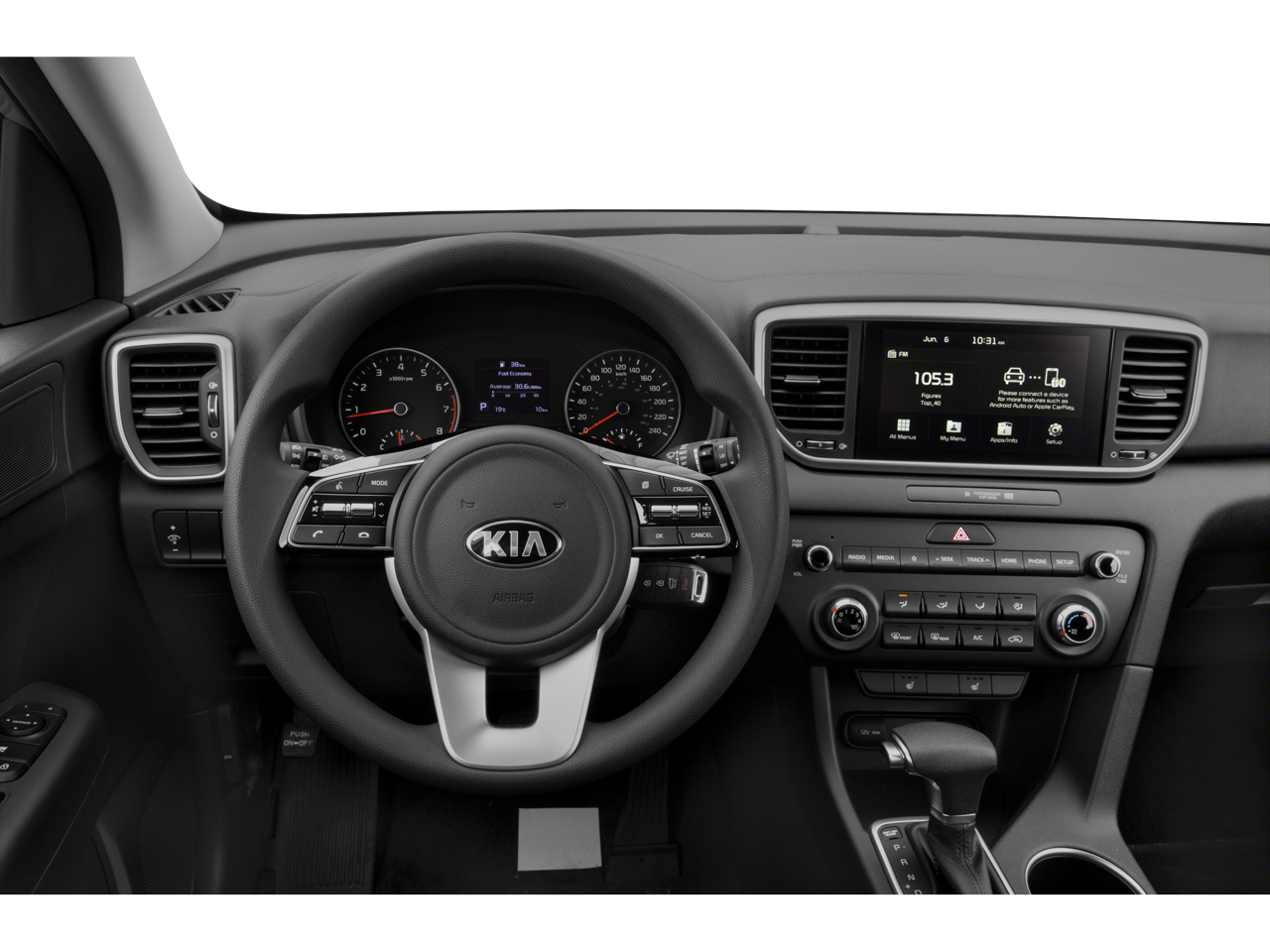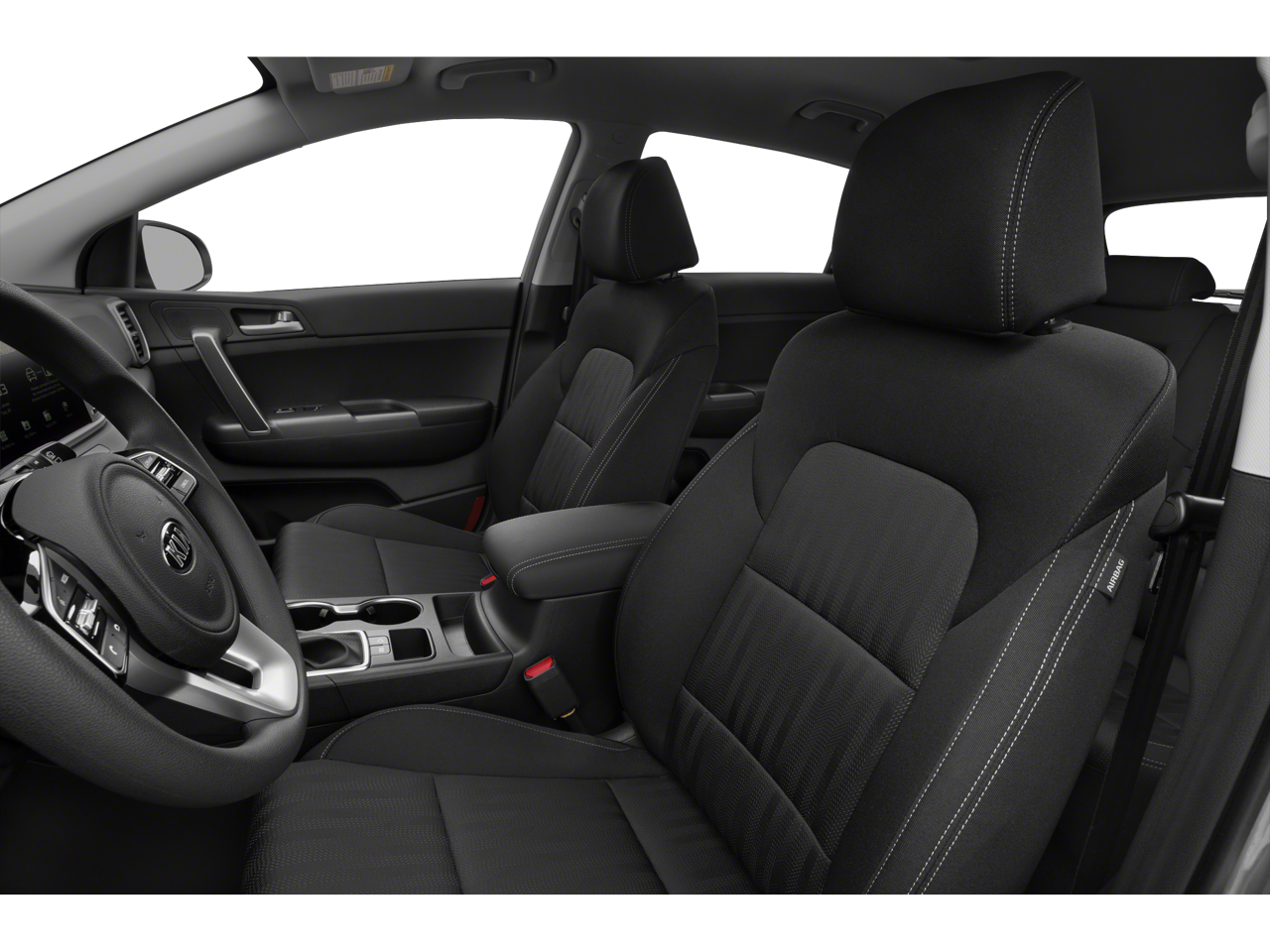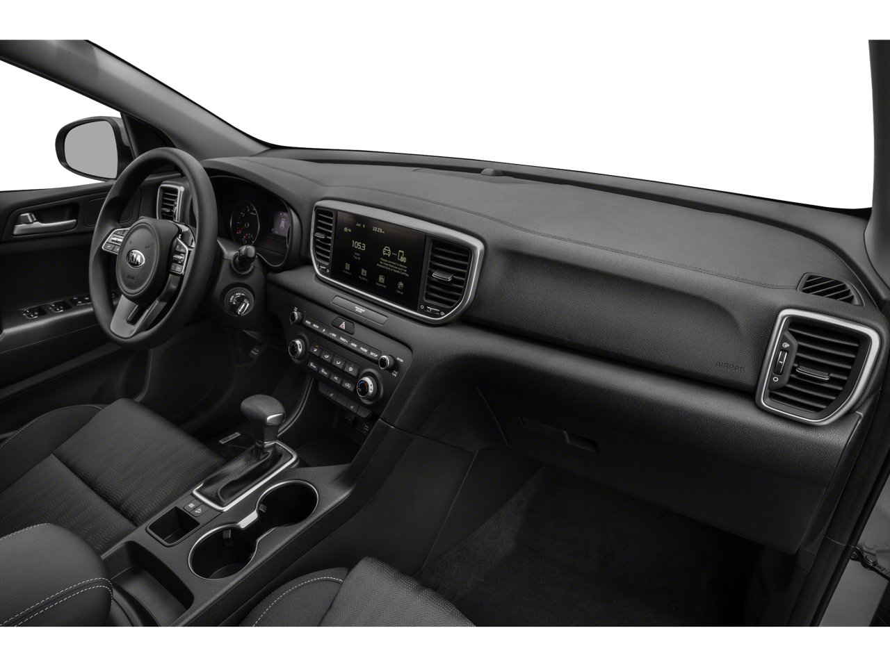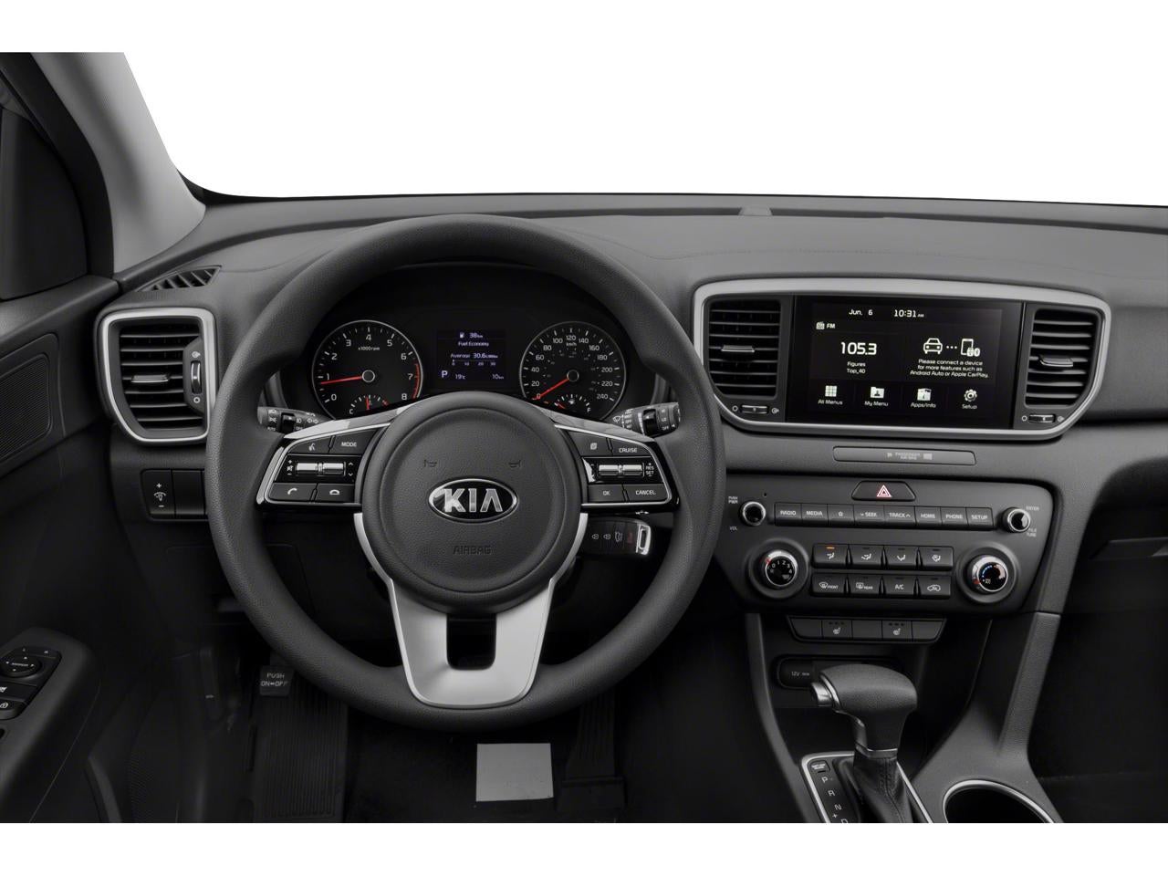 The interior of the Sportage LX is thoughtfully designed to provide a comfortable and convenient driving experience. Cloth seat trim, a 10-way power-adjustable driver's seat, and a tilt and telescoping steering wheel ensure you can find your ideal driving position. The Sportage also offers a wealth of technology features, including Apple CarPlay and Android Auto integration, an auto-dimming rearview mirror with HomeLink and compass, and a rear-view camera for effortless parking.