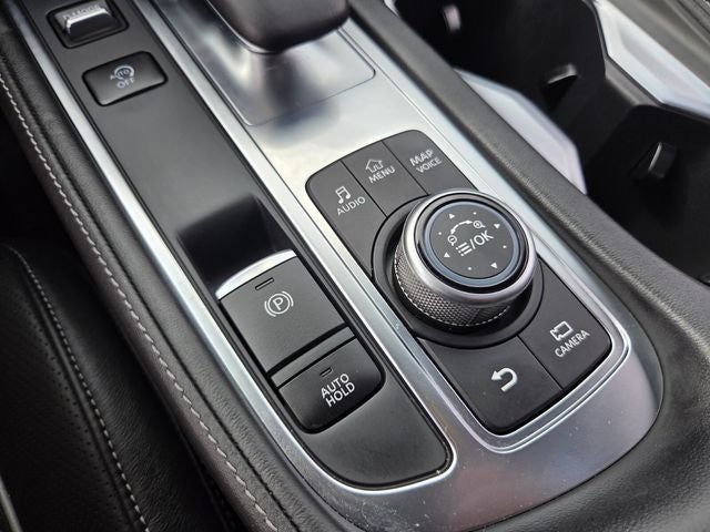 Cargo Package (Cargo Mat (Reversible) and First Aid Kit), INFINITI Certified Pre-Owned Certified, 17 Speakers, 3rd row seats: bench, 4-Wheel Disc Brakes, 4.334 Axle Ratio, ABS brakes, Air Conditioning, Alloy wheels, AM/FM radio: SiriusXM, Anti-whiplash front head restraints, Auto High-beam Headlights, Auto-dimming door mirrors, Auto-dimming Rear-View mirror, Automatic temperature control, Bose Performance Series 17-Speaker Sound System, Brake assist, Bumpers: body-color, Delay-off headlights, Driver door bin, Driver vanity mirror, Dual front impact airbags, Dual front side impact airbags, Electronic Stability Control, Emergency communication system: INFINITI InTouch w/1-year trial, Floor Mats on Captains Chair w/3rd Row Tray, Four wheel independent suspension, Front anti-roll bar, Front Bucket Seats, Front Center Armrest, Front dual zone A/C, Front reading lights, Fully automatic headlights, Garage door transmitter: HomeLink, Heads-Up Display, Heated & Cooled Front Bucket Seats, Heated door mirrors, Heated front seats, Heated rear seats, Heated steering wheel, Illuminated entry, Illuminated Kick Plates, Knee airbag, Leather Shift Knob, Leather steering wheel, Literature Kit, Low tire pressure warning, Memory seat, Navigation system: INFINITI InTouch Navigation, Occupant sensing airbag, Outside temperature display, Overhead airbag, Overhead console, Panic alarm, Passenger door bin, Passenger vanity mirror, Power door mirrors, Power driver seat, Power Liftgate, Power moonroof, Power passenger seat, Power steering, Power windows, Radio data system, Radio: AM/FM Audio System, Rain sensing wipers, Rear air conditioning, Rear anti-roll bar, Rear reading lights, Rear side impact airbag, Rear window defroster, Rear window wiper, Reclining 3rd row seat, Remote keyless entry, Roof rack: rails only, Security system, Semi Aniline Leather Seating Surfaces, Speed control, Speed-sensing steering, Speed-Sensitive Wipers, Splash Guards, Split folding rear seat, Spoiler, Steering wheel memory, Steering wheel mounted audio controls, Tachometer, Telescoping steering wheel, Tilt steering wheel, Traction control, Trip computer, Turn signal indicator mirrors, Variably intermittent wipers, Ventilated front seats, and Wheels: 20 x 8J Luxury Machined Aluminum Alloy.