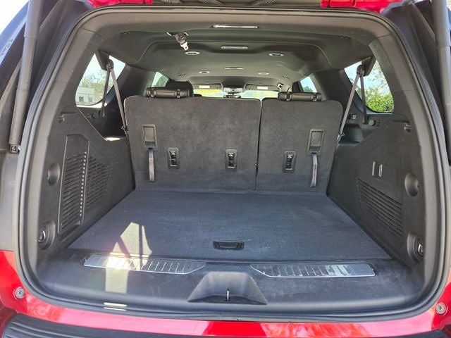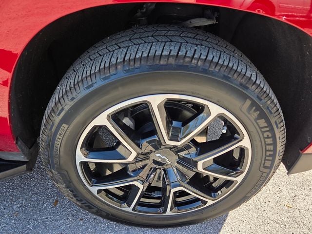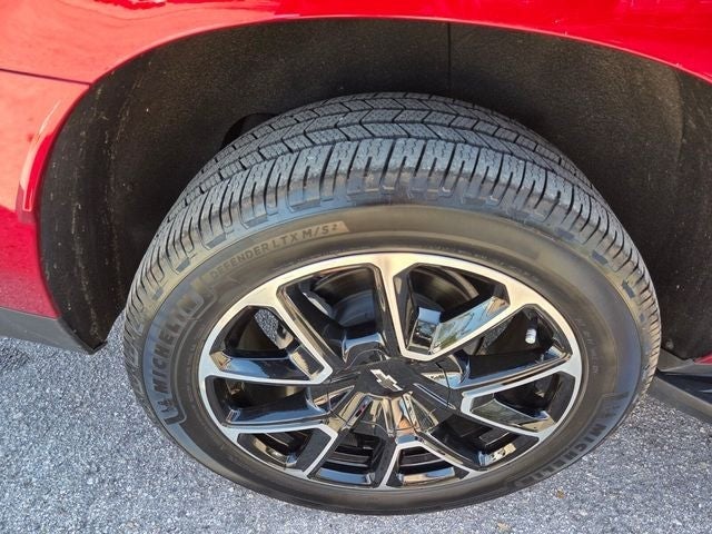 Preferred Equipment Group 1SP (10-Way Power Driver & Passenger Seat Adjusters, 1st & 2nd Row Color-Keyed Carpeted Floor Mats, Auto-Dimming Inside Rear-View Mirror, Bose 9-Speaker Stereo Audio System Feature, Bright Front & Rear Door Sill Plates, Color-Keyed Carpeting Floor Covering, Driver & Front Outboard Passenger Airbags, Enhanced Driver Information Center, Floor Console w/Storage Area, Hands-Free Rear Power Programmable Liftgate, Heated Driver & Front Passenger Seats, Infotainment Display, LED Daytime Running Lamps, Memory Settings For Driver, Remote Start, SiriusXM Radio w/360L, Universal Home Remote, Wireless Charging, and Wrapped Steering Wheel), 3.23 Rear Axle Ratio, 3rd row seats: split-bench, 4-Wheel Disc Brakes, 9 Speakers, ABS brakes, Air Conditioning, Alloy wheels, AM/FM radio: SiriusXM with 360L, Apple CarPlay/Android Auto, Auto High-beam Headlights, Auto-dimming Rear-View mirror, Automatic temperature control, Brake assist, Bumpers: body-color, Compass, Delay-off headlights, Driver door bin, Driver vanity mirror, Dual front impact airbags, Dual front side impact airbags, Electronic Stability Control, Emergency communication system: OnStar and Chevrolet connected services capable, Four wheel independent suspension, Front anti-roll bar, Front Bucket Seats, Front Center Armrest, Front dual zone A/C, Front reading lights, Fully automatic headlights, Garage door transmitter, Heated door mirrors, Heated front seats, Illuminated entry, Low tire pressure warning, Memory seat, Navigation System, Occupant sensing airbag, Outside temperature display, Overhead airbag, Overhead console, Panic alarm, Passenger door bin, Passenger vanity mirror, Perforated Leather Seating Surfaces, Power door mirrors, Power driver seat, Power Liftgate, Power passenger seat, Power steering, Power windows, Premium audio system: Chevrolet Infotainment 3 Premium, Premium Smooth Ride Suspension, Radio: Chevrolet Infotainment 3 Premium System, Rain sensing wipers, Rear air conditioning, Rear anti-roll bar, Rear reading lights, Rear seat center armrest, Rear window defroster, Rear window wiper, Remote keyless entry, Roof rack: rails only, Security system, Speed control, Speed-sensing steering, Split folding rear seat, Spoiler, Steering wheel mounted audio controls, Tachometer, Telescoping steering wheel, Tilt steering wheel, Traction control, Trip computer, Variably intermittent wipers, Voltmeter, Wheel Locks (Set of 4) (LPO), and Wheels: 22 x 9 Bright Machined.