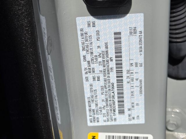 Equipment Group 332A Mid Package (2-Door Intelligent Access w/Lock/Unlock, Ambient Footwell Lighting, Auto-Dimming Interior Rear-View Mirror, Connected Navigation, Dr & Pass Illuminated Sliding Visor Vanity Mirrors, Dual Smart Charging USB Ports, Dual-Zone Electronic Automatic Temperature Control, Front Row Heated Seats, Power Outlet - Back Side of Center Floor Console, and Rear Parking Sensors), 4-Wheel Disc Brakes, 4.7 Axle Ratio, 7 Speakers, ABS brakes, Air Conditioning, Alloy wheels, AM/FM radio: SiriusXM with 360L, AM/FM Stereo, Auto High-Beam Headlamps, Auto High-beam Headlights, BLIS Blind Spot Information System, Brake assist, Compass, Delay-off headlights, Driver door bin, Driver vanity mirror, Dual front impact airbags, Dual front side impact airbags, Electronic Stability Control, Emergency communication system: 911 Assist, Exterior Parking Camera Rear, Front & Rear Floor Liners w/o Carpet Floor Mats, Front anti-roll bar, Front Bucket Seats, Front Center Armrest, Front reading lights, Front wheel independent suspension, Fully automatic headlights, Heated door mirrors, Illuminated entry, Integrated roll-over protection, Lane-Keeping System, Leather Shift Knob, Low tire pressure warning, Marine Grade Vinyl Bucket Seats, Occupant sensing airbag, Outside temperature display, Overhead airbag, Overhead console, Panic alarm, Passenger door bin, Passenger vanity mirror, Power door mirrors, Power steering, Power windows, Pre-Collision Assist w/Automatic Emergency Braking, Radio data system, Rear-View Camera, Remote keyless entry, Security system, SiriusXM Radio w/360L, Speed control, Split folding rear seat, Steering wheel mounted audio controls, SYNC 4, Tachometer, Telescoping steering wheel, Tilt steering wheel, Traction control, Trip computer, Variably intermittent wipers, Voltmeter, and Wheels: 17 Machined Carbonized Aluminum.