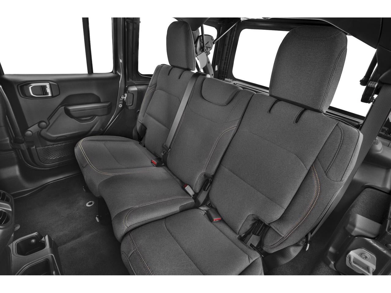 Quick Order Package 24G Sahara, Safety Group (Auto High Beam Headlamp Control, Blind Spot & Cross Path Detection, and ParkSense Rear Park Assist System), Technology Group (12.3 Touchscreen Display, 4G LTE Wi-Fi Hot Spot, Alpine Premium Audio System, Apple CarPlay, Auto-Dimming Rear-View Mirror, Connected Travel & Traffic Services, Connectivity - US/Canada, Disassociated Touchscreen Display, Google Android Auto, GPS Navigation, HD Radio, Integrated Center Stack Radio, Integrated Off-Road Camera, Integrated Voice Command w/Bluetooth®, Radio: Uconnect 5 Nav w/12.3 Display, SiriusXM Radio Service, SiriusXM w/360L, and Universal Garage Door Opener), Trailer Tow & Aux Switch Group (7 & 4 Pin Wiring Harness, Auxiliary Switches, and Class II Receiver Hitch), 110 MPH Vehicle Max Speed Calibration, 3.45 Overall Top Gear Ratio, 4-Wheel Disc Brakes, 8 Speakers, ABS brakes, Air Conditioning, Alloy wheels, AM/FM radio: SiriusXM, Apple CarPlay/Android Auto, Automatic temperature control, Aux Battery, Brake assist, Cloth Low-Back Bucket Seats, Compass, Delay-off headlights, Driver door bin, Driver vanity mirror, Dual front impact airbags, Dual front side impact airbags, Electronic Stability Control, Emergency communication system: Jeep Connect, Front anti-roll bar, Front Bucket Seats, Front Center Armrest w/Storage, Front dual zone A/C, Front fog lights, Front reading lights, Fully automatic headlights, Heated door mirrors, Heated front seats, Heated steering wheel, Heavy Duty Suspension w/Gas Shocks, Illuminated entry, Integrated roll-over protection, Jeep Trail Rated Kit, Low tire pressure warning, MOPAR All-Weather Floor Mats, MOPAR Plastic Door Sill Guards, Non-Lock Fuel Cap w/o Discriminator, Occupant sensing airbag, Outside temperature display, Overhead airbag, Panic alarm, ParkView Rear Back-Up Camera, Passenger door bin, Passenger vanity mirror, Power door mirrors, Power steering, Power Top Quarter Window Storage Bag, Power windows, Radio data system, Radio: Uconnect 5 w/12.3 Display, Rear anti-roll bar, Rear reading lights, Rear Window Defroster, Rear Window Wiper/Washer, Remote keyless entry, Removable Rear Quarter Windows, Security system, Side Steps, Sky 1-Touch Power Top, Speed control, Split folding rear seat, Steering wheel mounted audio controls, Stop-Start Dual Battery System, Tachometer, Telescoping steering wheel, Tilt steering wheel, Traction control, Trip computer, Variably intermittent wipers, Voltmeter, Wheels: 18 x 7.5 Machine/Painted Gray (DISC), and Wheels: 18 x 7.5 Machine/Painted Gray.