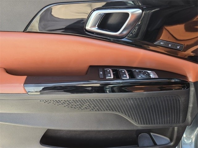 10 Speakers, 3.51 Axle Ratio, 3rd row seats: split-bench, 4-Wheel Disc Brakes, ABS brakes, Air Conditioning, Alloy wheels, AM/FM radio: SiriusXM, Apple CarPlay & Android Auto, Artificial Leather Seat Trim, Auto High-beam Headlights, Automatic temperature control, Brake assist, Bumpers: body-color, Carpeted Floor Mats (8-Passenger), Compass, Delay-off headlights, Driver door bin, Driver vanity mirror, Dual front impact airbags, Dual front side impact airbags, Electronic Stability Control, Emergency communication system, Exterior Parking Camera Rear, Four wheel independent suspension, Front anti-roll bar, Front Bucket Seats, Front Center Armrest, Front dual zone A/C, Front fog lights, Front reading lights, Fully automatic headlights, Heated & Ventilated Front Bucket Seats, Heated door mirrors, Heated front seats, Illuminated entry, Knee airbag, Leather Shift Knob, Leather steering wheel, Low tire pressure warning, Memory seat, Navigation System, Occupant sensing airbag, Outside temperature display, Overhead airbag, Overhead console, Panic alarm, Passenger door bin, Passenger vanity mirror, Power door mirrors, Power driver seat, Power Liftgate, Power passenger seat, Power steering, Power windows, Radio: AM/FM/HD Audio System, Rear air conditioning, Rear anti-roll bar, Rear reading lights, Rear window defroster, Rear window wiper, Reclining 3rd row seat, Remote keyless entry, Roof rack: rails only, Security system, Speed control, Speed-sensing steering, Split folding rear seat, Spoiler, Steering wheel mounted audio controls, Tachometer, Telescoping steering wheel, Tilt steering wheel, Traction control, Trip computer, Turn signal indicator mirrors, Variably intermittent wipers, Ventilated front seats, and Wheels: 7.5J x 19 Black Painted Alloy.