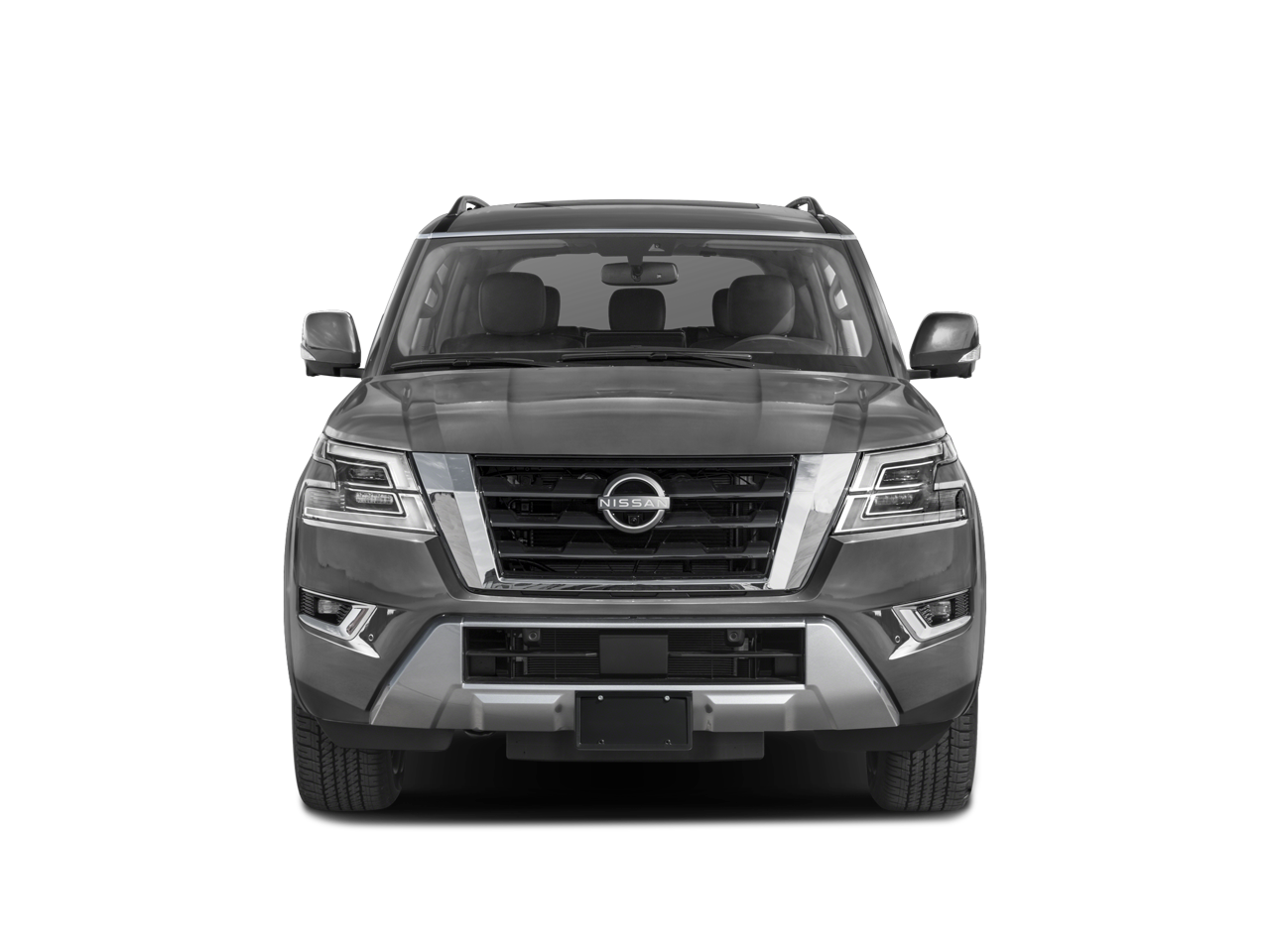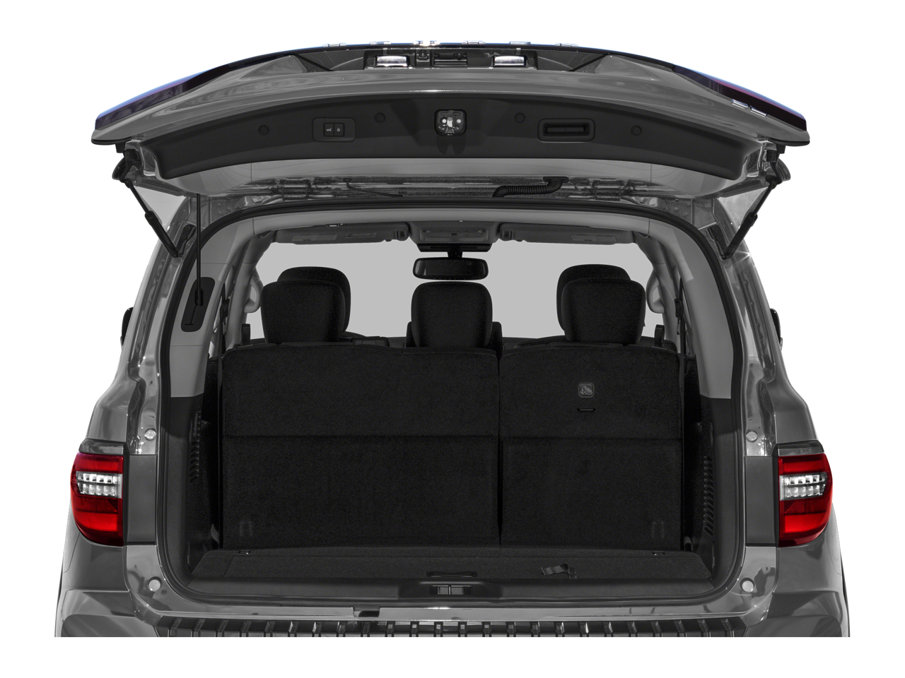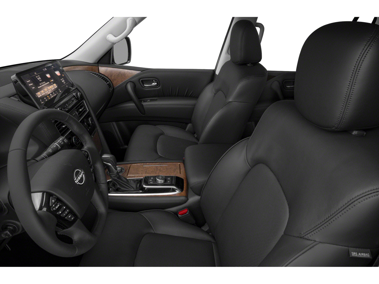 Captain's Chairs Package (2nd Row Captain's Chairs and 2nd Row Center Console w/Padded Armrest), 13 Speakers, 2.937 Axle Ratio, 3rd Row Carpeted Floor Mats - Captain Seat, 3rd row seats: split-bench, 4-Wheel Disc Brakes, ABS brakes, Air Conditioning, Alloy wheels, AM/FM radio: SiriusXM, Anti-whiplash front head restraints, Auto High-beam Headlights, Auto tilt-away steering wheel, Auto-dimming door mirrors, Auto-dimming Rear-View mirror, Auto-leveling suspension, Automatic temperature control, Brake assist, Bumpers: body-color, Delay-off headlights, Driver door bin, Driver vanity mirror, Dual front impact airbags, Dual front side impact airbags, Electronic Stability Control, Emergency communication system: NissanConnect Services, Exterior Parking Camera Rear, Four wheel independent suspension, Front anti-roll bar, Front Bucket Seats, Front Center Armrest, Front dual zone A/C, Front fog lights, Front reading lights, Fully automatic headlights, Garage door transmitter: HomeLink, Heated door mirrors, Heated Front Bucket Seats, Heated front seats, Heated steering wheel, HVAC memory, Illuminated entry, Knee airbag, Leather Shift Knob, Leather steering wheel, Leather-Appointed Seat Trim, Low tire pressure warning, Memory seat, Navigation System, Occupant sensing airbag, Outside temperature display, Overhead airbag, Overhead console, Panic alarm, Passenger door bin, Passenger vanity mirror, Power door mirrors, Power driver seat, Power Liftgate, Power moonroof, Power passenger seat, Power steering, Power windows, Radio: NissanConnect w/SiriusXM, Rear air conditioning, Rear anti-roll bar, Rear reading lights, Rear seat center armrest, Rear window defroster, Rear window wiper, Reclining 3rd row seat, Remote keyless entry, Security system, Speed control, Speed-sensing steering, Speed-Sensitive Wipers, Split folding rear seat, Spoiler, Steering wheel memory, Steering wheel mounted audio controls, Tachometer, Telescoping steering wheel, Tilt steering wheel, Traction control, Trip computer, Turn signal indicator mirrors, Variably intermittent wipers, Voltmeter, and Wheels: 20 x 8J Painted Alloy.