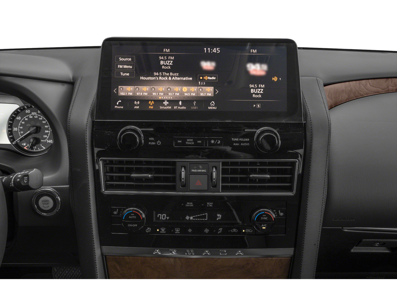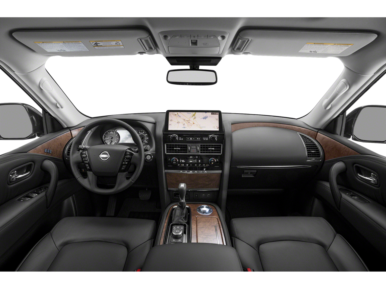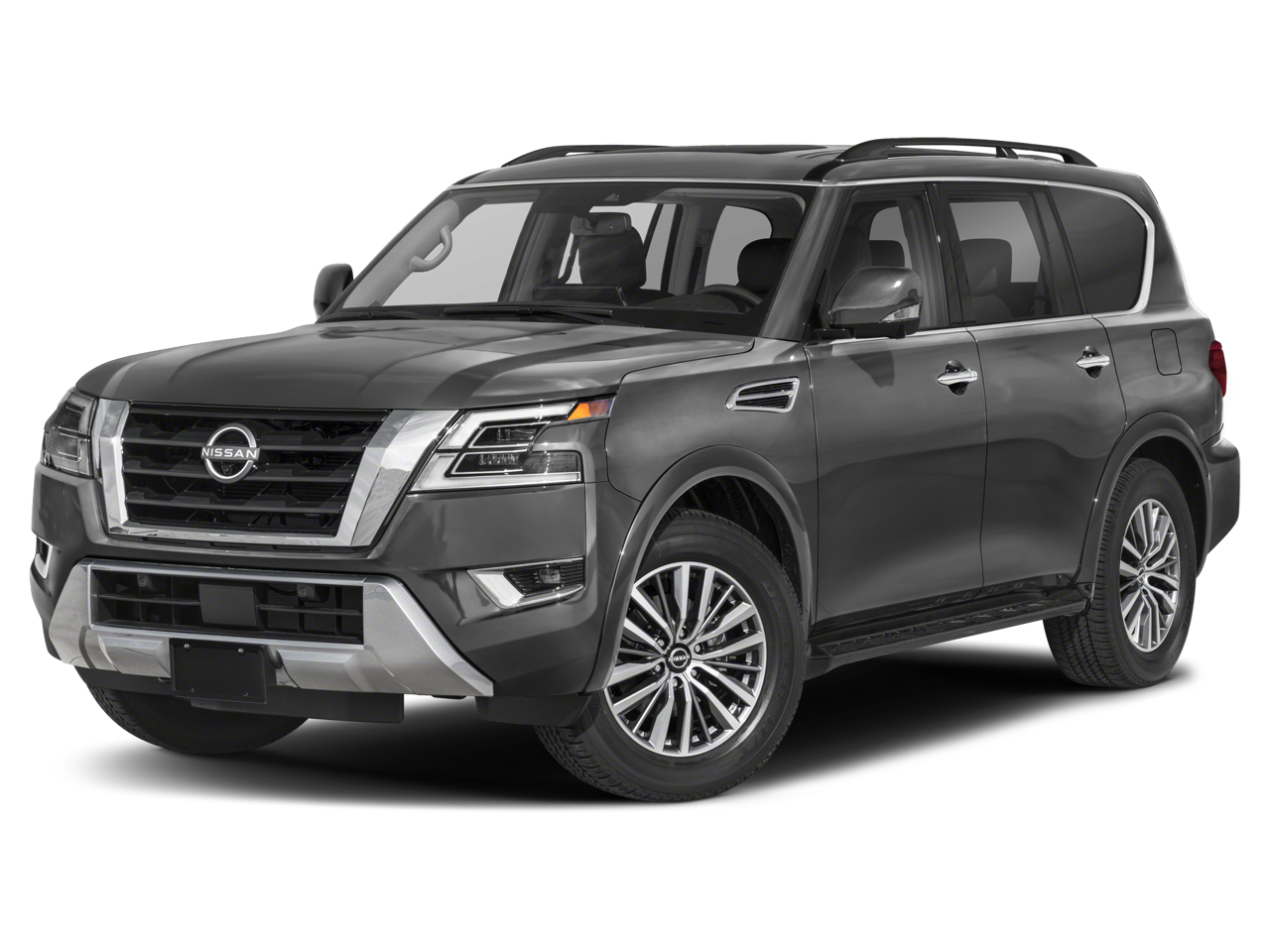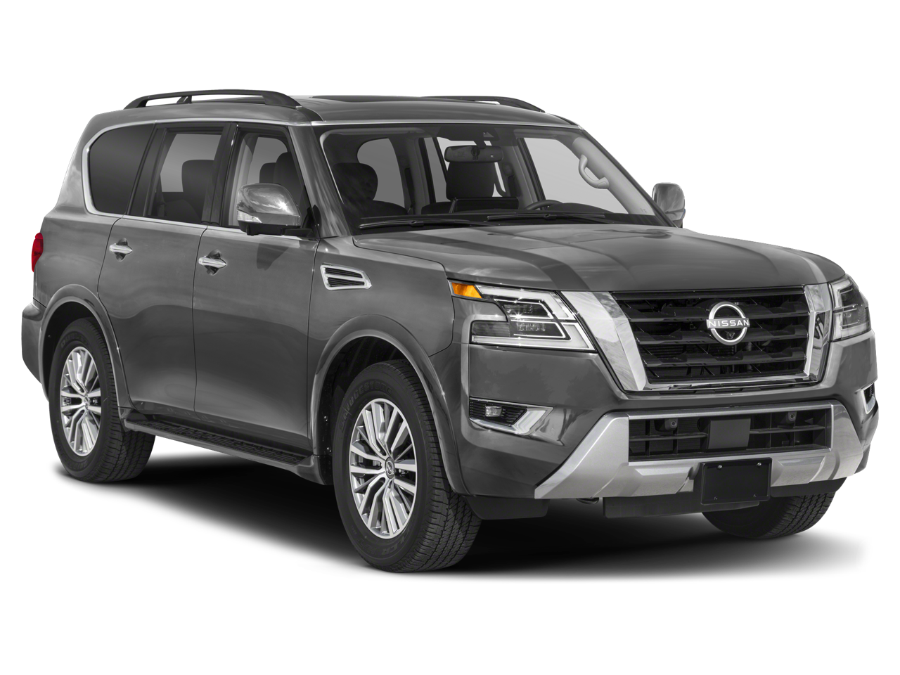 Captain's Chairs Package (2nd Row Captain's Chairs and 2nd Row Center Console w/Padded Armrest), 13 Speakers, 2.937 Axle Ratio, 3rd Row Carpeted Floor Mats - Captain Seat, 3rd row seats: split-bench, 4-Wheel Disc Brakes, ABS brakes, Air Conditioning, Alloy wheels, AM/FM radio: SiriusXM, Anti-whiplash front head restraints, Auto High-beam Headlights, Auto tilt-away steering wheel, Auto-dimming door mirrors, Auto-dimming Rear-View mirror, Auto-leveling suspension, Automatic temperature control, Brake assist, Bumpers: body-color, Delay-off headlights, Driver door bin, Driver vanity mirror, Dual front impact airbags, Dual front side impact airbags, Electronic Stability Control, Emergency communication system: NissanConnect Services, Exterior Parking Camera Rear, Four wheel independent suspension, Front anti-roll bar, Front Bucket Seats, Front Center Armrest, Front dual zone A/C, Front fog lights, Front reading lights, Fully automatic headlights, Garage door transmitter: HomeLink, Heated door mirrors, Heated Front Bucket Seats, Heated front seats, Heated steering wheel, HVAC memory, Illuminated entry, Knee airbag, Leather Shift Knob, Leather steering wheel, Leather-Appointed Seat Trim, Low tire pressure warning, Memory seat, Navigation System, Occupant sensing airbag, Outside temperature display, Overhead airbag, Overhead console, Panic alarm, Passenger door bin, Passenger vanity mirror, Power door mirrors, Power driver seat, Power Liftgate, Power moonroof, Power passenger seat, Power steering, Power windows, Radio: NissanConnect w/SiriusXM, Rear air conditioning, Rear anti-roll bar, Rear reading lights, Rear seat center armrest, Rear window defroster, Rear window wiper, Reclining 3rd row seat, Remote keyless entry, Security system, Speed control, Speed-sensing steering, Speed-Sensitive Wipers, Split folding rear seat, Spoiler, Steering wheel memory, Steering wheel mounted audio controls, Tachometer, Telescoping steering wheel, Tilt steering wheel, Traction control, Trip computer, Turn signal indicator mirrors, Variably intermittent wipers, Voltmeter, and Wheels: 20 x 8J Painted Alloy.