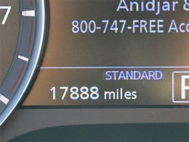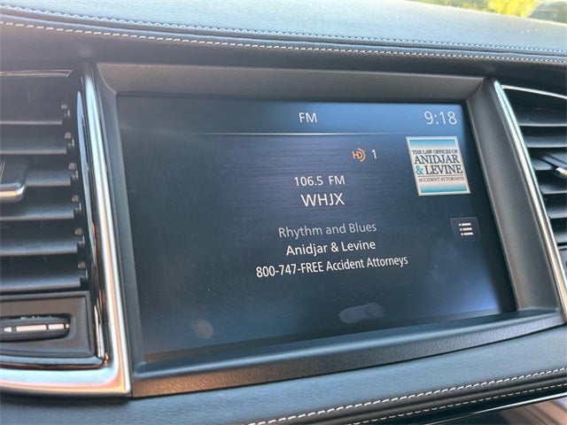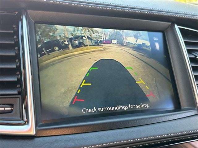 Cargo Package (Black Film Rear Bumper Protector, Cargo Net, and Reversible Cargo Mat), INFINITI Certified Pre-Owned Certified, 4-Wheel Disc Brakes, 6 Speakers, ABS brakes, Air Conditioning, Alloy wheels, AM/FM radio: SiriusXM, Auto High-beam Headlights, Auto-dimming Rear-View mirror, Automatic temperature control, Black Splash Guards (Set of 4), Brake assist, Bumpers: body-color, Carpeted Floor Mats, CD player, Delay-off headlights, Driver door bin, Driver vanity mirror, Dual front impact airbags, Dual front side impact airbags, Electronic Stability Control, Emergency communication system: INFINITI InTouch, Exclusive Paint, Exterior Parking Camera Rear, Four wheel independent suspension, Front anti-roll bar, Front Bucket Seats, Front Center Armrest, Front dual zone A/C, Front fog lights, Front reading lights, Fully automatic headlights, Garage door transmitter, Heated door mirrors, Heated Front Bucket Seats, Heated front seats, Illuminated entry, Knee airbag, Leather Shift Knob, Leather steering wheel, Leather-Appointed Seat Trim, Literature Kit, Low tire pressure warning, Memory seat, Occupant sensing airbag, Outside temperature display, Overhead airbag, Overhead console, Panic alarm, Passenger door bin, Passenger vanity mirror, Power door mirrors, Power driver seat, Power Liftgate, Power moonroof, Power passenger seat, Power steering, Power windows, Radio data system, Radio: AM/FM Audio System, Rear anti-roll bar, Rear Parking Sensors, Rear reading lights, Rear seat center armrest, Rear side impact airbag, Rear window defroster, Rear window wiper, Remote keyless entry, Security system, Speed control, Speed-sensing steering, Speed-Sensitive Wipers, Split folding rear seat, Spoiler, Steering wheel mounted audio controls, Tachometer, Telescoping steering wheel, Tilt steering wheel, Traction control, Trip computer, Turn signal indicator mirrors, USB Charging Cable Set - INFINITI, Variably intermittent wipers, Welcome Lighting w/Logo, and Wheels: 8.5J x 20 Machine Finished Aluminum Alloy.