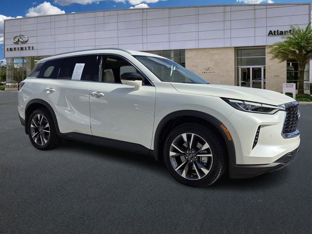 Powered by a robust 2.0L I4 Turbocharged engine mated to a smooth 9-Speed Automatic transmission, this QX60 LUXE delivers an impressive 268 horsepower and an exceptional fuel efficiency of 22 MPG in the city and 28 MPG on the highway. With its advanced FWD drivetrain, you'll enjoy a refined and confident ride, whether navigating city streets or exploring winding roads.